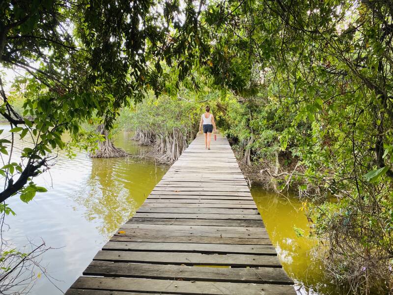 Dit is de rivier door het eiland loopt en het eigenlijk in tweeën splitst. Je hebt hier een schitterende natuur waar je doorheen kan peddelen. Je gaat door een en al groene natuur en je kan de meest mooie dieren tegenkomen. Ik heb zelfs een aantal kaaimannen kunnen spotten vanuit mijn kajak. Maar ook vogels en als je geluk hebt ook apen. Een tour met gids (wat wel aan te raden is, want zonder hem had ik echt geen één kaaiman gezien) kost je ongeveer $25,-